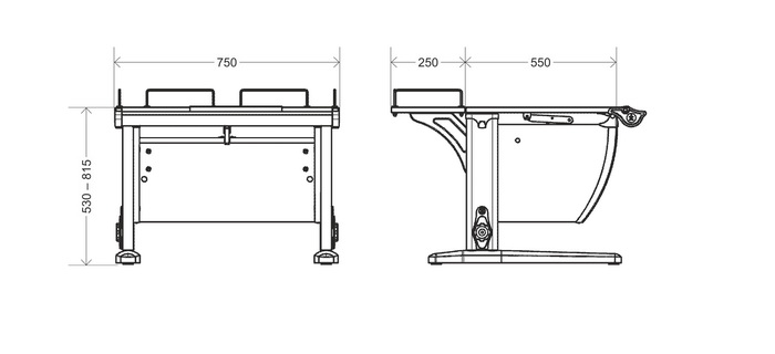 - Высота стола - 53-81,5 см (рост 120-198 см)