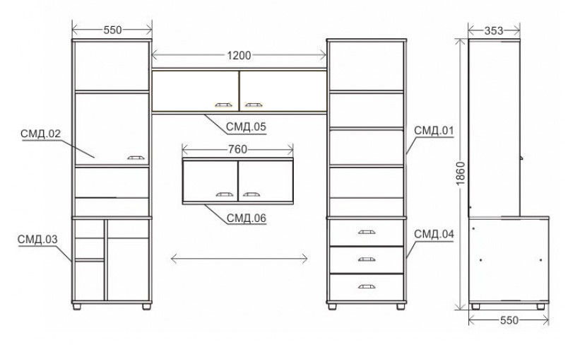 8630р.Стеллаж СМД 01 открытый